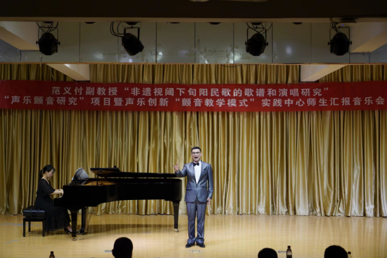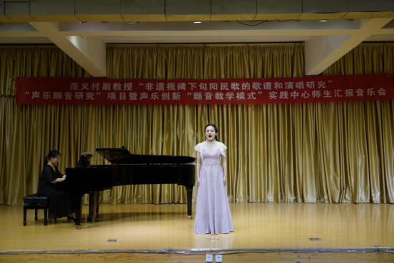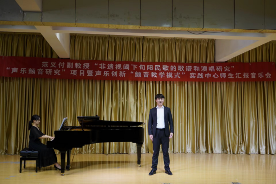 6月27日晚,范义付副教授“非遗视阈下旬阳民歌的歌谱和演唱研究”“声乐颤音研究”项目暨声乐创新“颤音教学模式”实践中心师生汇报音乐会在万象城官网江北1401演艺厅成功举办。