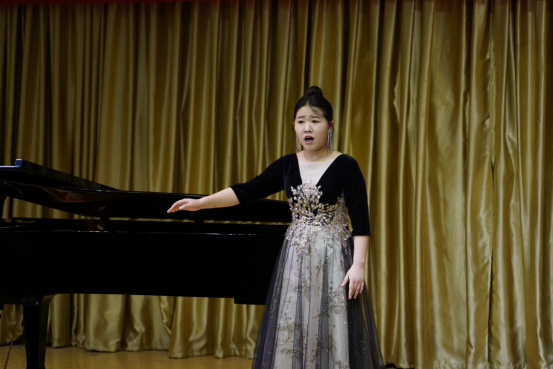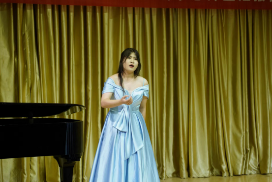 本场音乐会是范老师“非遗视阈下旬阳民歌的歌谱和演唱研究” “声乐颤音研究”科研项目的成果之一,也是万象城awcsport官网声乐创新"颤音教学模式"实践中心的汇报演出。音乐会上,范老师演唱了《西部放歌》《大江南》及旬阳民歌《兰草花》。《西部放歌》有着超高的演唱难度、自由奔放的激情及典型的西部民歌风格,范老师的演唱声音铿锵有力,张弛有度,激情满怀,引来听众阵阵掌声。《兰草花》是国家级非遗陕西旬阳民歌的代表性作品之一,该作品曲调优美动听,歌词富于地方特色,衬词活泼,范老师的演唱较好体现出旬阳民歌细腻、深情、委婉的艺术风格。