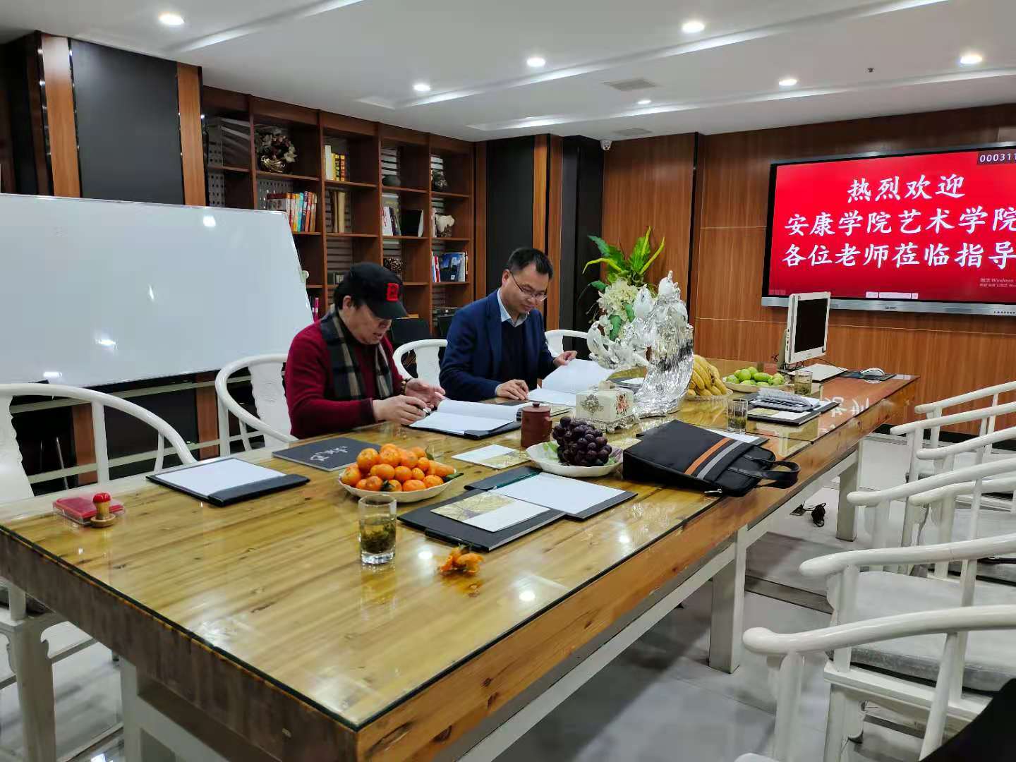 在安康南枫装饰有限公司,董事长李枫热情接待了调研组一行,副院长成党伟介绍了调研目的和万象城awcsport官网近年来的发展情况,双方就前期合作和后期合作方向进行了充分的沟通交流,就在设计人才培养、实习就业等方面合作达成了合作意向,双方签订了大学生实习就业基地协议,并举行了授牌仪式。