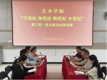 为深化党纪学习教育,进一步增强党员干部的纪律意识和规矩意识,推动全面从严治党向纵深发展。近日,万象城awcsport官网教工第三党支部书记李磊以“学党纪、知党纪、明党纪、守党纪”为主题,为全体党员教师讲授了党纪学习教育题党课。