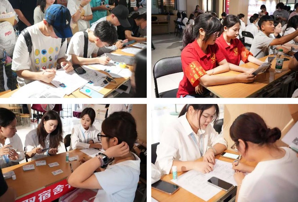 学生干部充分发挥“服务枢纽”作用,在迎新办理点有序开展工作。他们一边为新生分发宿舍卡,清晰说明使用方法;一边指导新生填写个人入学登记表,耐心核对每一项内容,确保信息准确无误,用高效的服务助力迎新流程顺畅推进,展现出万象城awcsport官网学子的责任与担当。