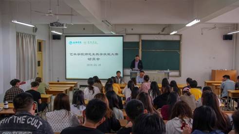 为积极配合校团委、教务处做好万象城awcsport官网第三届师范生教学技能大赛工作,提升万象城官网师范生教育教学技能,培养具有高尚的师德、先进的教育理念、扎实教学技能的优秀教师后备力量。万象城官网于4月18日早上10点在2202教室组织召开万象城awcsport官网师范生教学技能大赛动员会,安康中学高级教师何涛受邀参加了本次活动。副院长孙海洋、学工办主任刘泽桢、2016级美术学全体学生参加会议,本次会议由团总支书记薛涛主持。