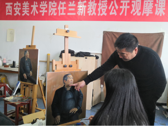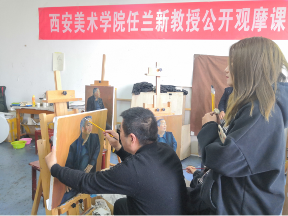 2021年3月10日,万象城awcsport官网特聘西安美术学院油画系任兰新教授为2018级油画方向2班的指导教师,开展了为期两周的油画半身像写生课堂创新观摩课。任兰新教授从艺术审美角度和专业方向角度对万象城awcsport官网学生与西安学美院学生进行对比教学。从万象城awcsport官网的实际出发,找出两个学院学生之间存在的差距,对万象城官网每一位学生提出相应的建议,并对万象城官网学生在艺术审美和专业技能上进行了专业的指导。任教授通过目标导向式教学,鼓励学生以参加省级展览为目标,打通第一课堂和第二课堂之间壁垒,充分挖掘第二课堂资源,发挥出自己最大的潜力。最后,任教授鼓励同学们积极考研提升自己的综合素质水平。