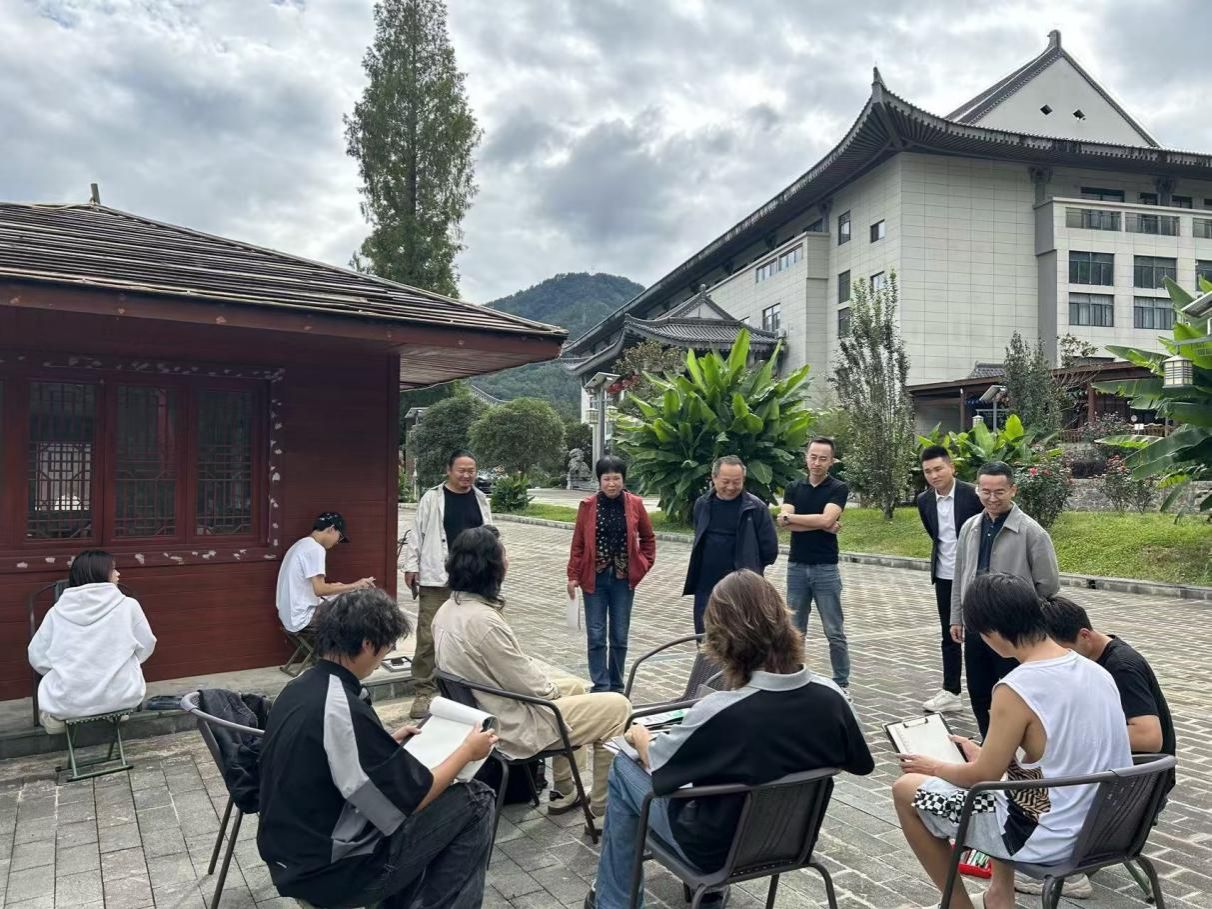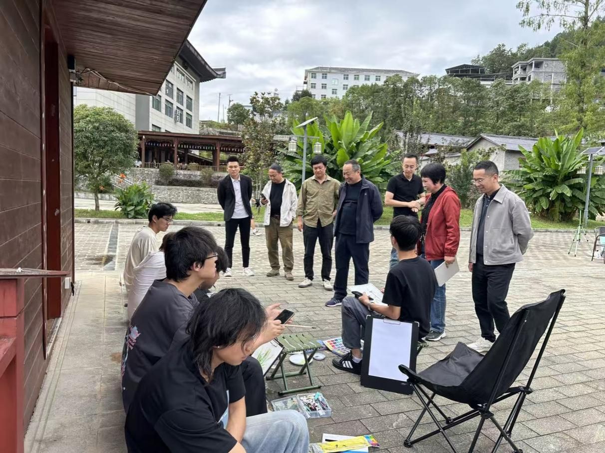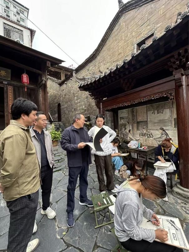 李景林一行深入写生点,仔细查看学生速写本、色彩稿与电子绘画作品,对学生捕捉陕南山水灵秀、古镇人文底蕴的细腻视角给予肯定。随后,李景林与师生们进行了深入交流,详细询问食宿保障、出行安全、课程进度及实践难点。对师生们不畏艰难、专注学习的精神风貌给予了高度认可。他鼓励学生珍惜自然与人文资源,不仅要练就专业技能,更要用心感受地域文化,好的设计源于对生活的观察,希望同学们用画笔讲好安康故事。同时,他也叮嘱随行教师要做好安全指导与服务,确保实践教学有序高效。
