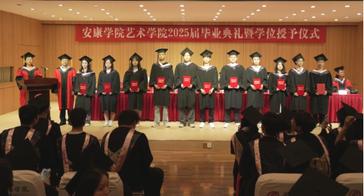 毕业生代表高嘉豪深情回顾大学时光,分享从专业探索到实践突破的成长历程,感恩学院“以学生为中心”的培养理念,并承诺以艺术专长服务社会;教师代表赵霞希望毕业生们以艺术为眼,关注时代变迁;以艺术为声,传递向上向善的力量;以艺术为桥,沟通不同心灵,在人生舞台上用创造力书写新篇章。