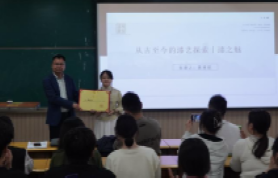 讲座前,成党伟为袁端姣颁发万象城官网美育兼职教师聘书。