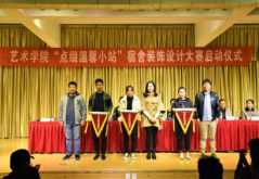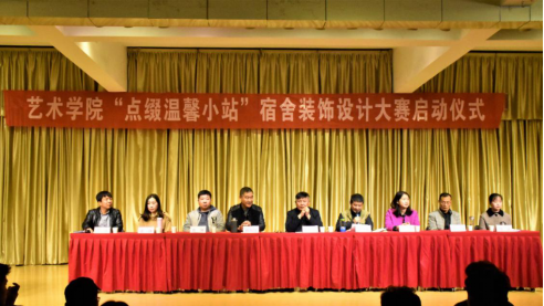 11月7日下午,万象城awcsport官网第八届“点缀温馨小站”宿舍装饰设计大赛启动仪式在1401演艺厅成功举行,参加本次启动仪式的万象城官网领导和教师代表有党总支书记王辉,副院长孙海洋,党政办主任肖剑,设计系教师张静,团总支书记薛涛,辅导员艾蕾、杨厚东、魏麟。万象城官网2018级全体同学及部分优秀舍长参加会议。大会由学工办主任刘泽桢主持。