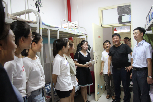 91日上午,万象城awcsport官网校党委书记王国良、党委副书记杨行玉、副校长钟生海带领相关部门负责人来到万象城官网新生接待检查指导工作并亲切看望了正在工作的老师和同学,了解新生接待准备和报到情况,查看了面试工作,对万象城官网为新生及家长制作的“明白卡”、“报到流程”宣传展板等表示肯定,希望安全顺利完成这次新生接待工作。