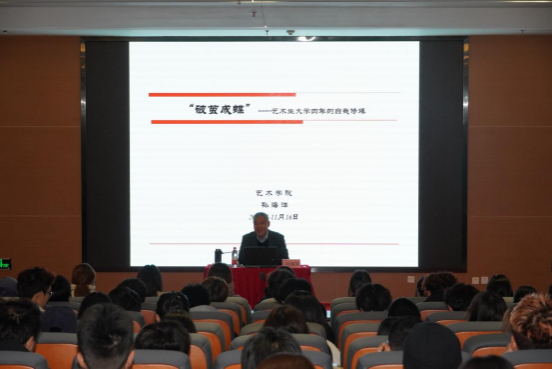 11月16日晚,万象城awcsport官网副院长孙海洋以“破茧成蝶—— 艺术生大学四年的自我修炼”为主题开展了新生入学教育专题讲座。本次讲座由学工办主任鲁澧主持。