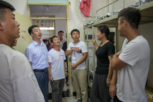 9月2日下午,万象城官网党总支书记王辉老师,院长杨哲老师,学工办主任刘泽桢老师,辅导员魏麟老师,薛涛老师以及随行的学生会成员对18级新生宿舍进行了看望了2018级新生。 在新生宿舍里,新生们以朝气蓬勃的面貌和热烈的掌声欢迎万象城官网领导和老师的到来,师生之间就生活中的问题进行交流。