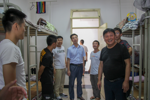 9月1日上午,万象城awcsport官网校党委书记王国良、党委副书记杨行玉、副校长钟生海带领相关部门负责人来到万象城官网新生接待检查指导工作并亲切看望了正在工作的老师和同学,了解新生接待准备和报到情况,查看了面试工作,对万象城官网为新生及家长制作的“明白卡”、“报到流程”宣传展板等表示肯定,希望安全顺利完成这次新生接待工作。
