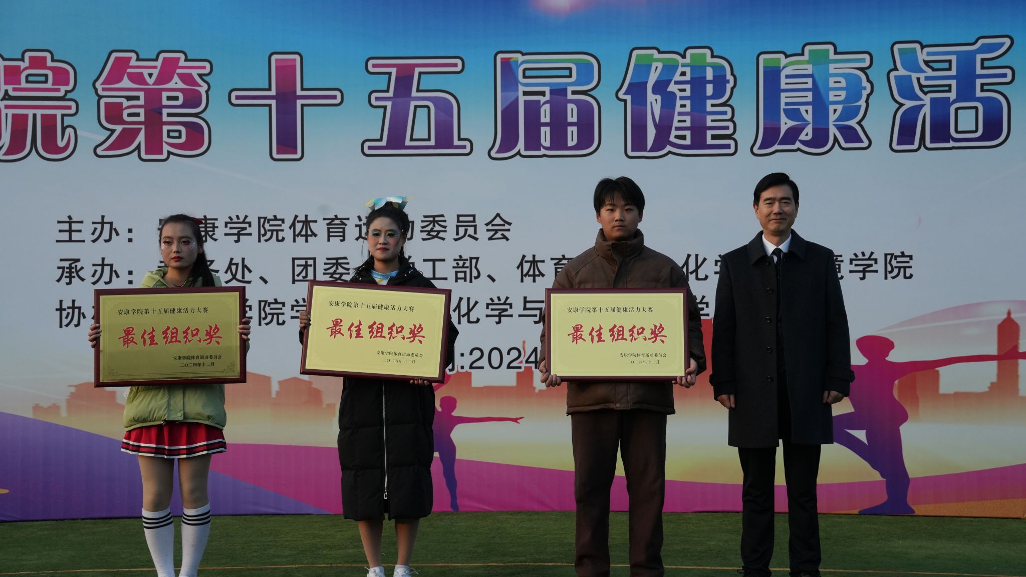 12月11日下午,万象城awcsport官网第十五届健康活力大赛在江北校区操场隆重举行。万象城awcsport官网代表队61名运动员体育舞蹈伦巴、恰恰、校园健身操、街舞、健身排舞、花球啦啦操6个大项的角逐中获得一等奖4项、二等奖1项和三等奖1项,万象城官网被评为本次大赛的最佳组织奖。