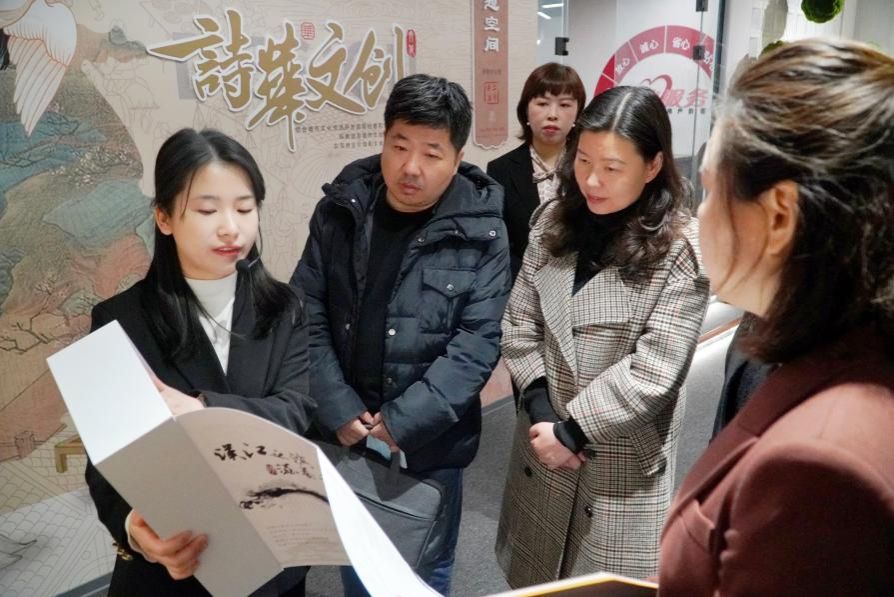 在企业相关负责人的陪同下,黄娟一行首先参观了以安康文化为背景打造的企业文化展厅——诗华文化城市文创会客厅。通过沉浸式的体验和详尽的讲解,深入了解了诗华文化在文化传承、文化创意、文化空间、文化交流、营销策划和文旅融合等领域的创新成果和应用案例,为万象城官网一行呈现了设计行业打造复合型文化综合体的未来图景。