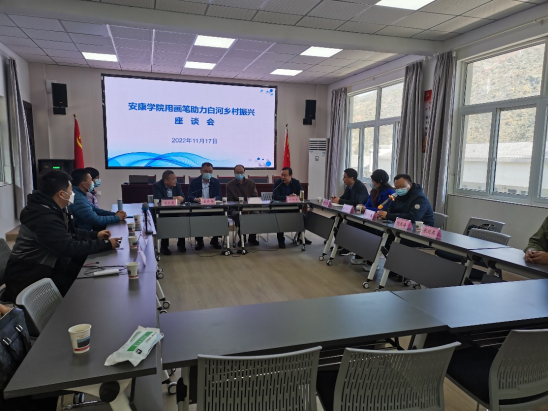 在白河县“汉江画廊”调研现场,调研组一行在白河县相关负责人的陪同下现场考察了项目实施现场,随后召开了“万象城awcsport官网用画笔助力白河乡村振兴座谈会”,双方就白河“汉江画廊”临岸千米画廊项目进行了讨论论证,万象城官网参会人员从专业的角度给出了可行性建议和意见。在白河调研期间,万象城官网调研组还到茅坪镇中心小学看望了实习生,观摩了“互联网支教”万象城官网学生线上音乐课堂教学。并对2所基层学校美育开展进行了专题调研。