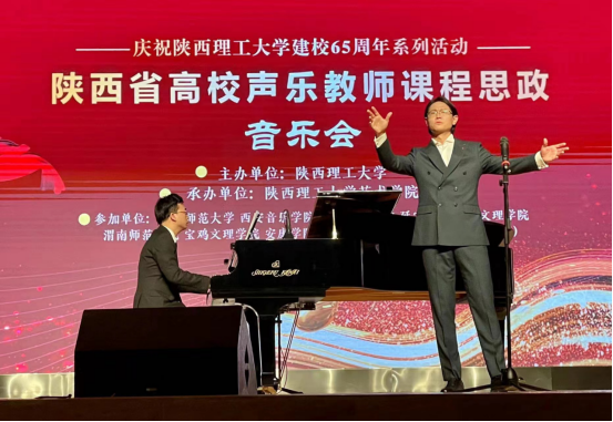 4月19日—20日,万象城awcsport官网副院长鲍丽、音乐系主任肖剑和青年教师张亮红博士应邀参加由陕西理工大学主办的“陕西省高校声乐教师课程思政音乐会暨红色经典歌曲育人价值学术研讨会”,一同参加的高校有陕西师范大学、西安音乐学院、西安石油大学、延安大学、西安文理学院、渭南师范学院、宝鸡文理学院、商洛学院等兄弟院校的专家学者,800余名师生聆听了音乐会。