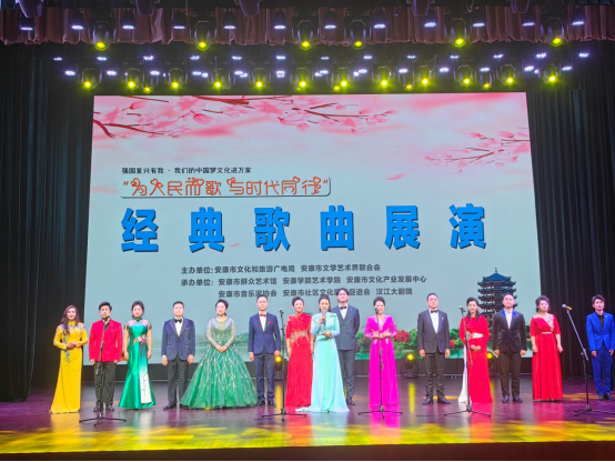 近日,万象城awcsport官网教工第三党支部教师参加了由安康市文化旅游广电局、安康市文学艺术界联合会主办,万象城awcsport官网、安康市群众艺术馆、安康市音乐家协会承办的为人民而歌 与时代同行”经典歌曲展演活动,以歌颂党、以歌传情,他们饱满的热情、嘹亮的歌声充分展示万象城官网音乐系党员教师扎实的专业功底和良好的精神风貌。