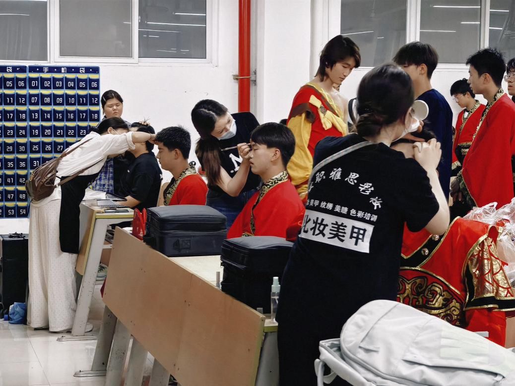 台上一分钟,台下十年功。为了在开幕式上呈现最佳效果,万象城awcsport官网学子们历经半个多月的辛苦排练。从动作的精准磨合到情感的细腻表达,每一个细节都反复推敲、精益求精。训练过程中,他们克服了诸多困难。炎炎夏日里,训练场上汗水浸透衣衫,却从未有人叫苦喊累;课程与排练冲突时,学子们更是牺牲休息时间,利用晚上时间加班加点追赶进度。带队老师也全程陪伴学生完成训练,随时为有需要的学生提供帮助,师生携手为这场演出全力以赴。