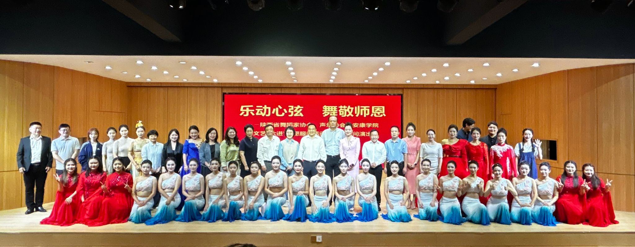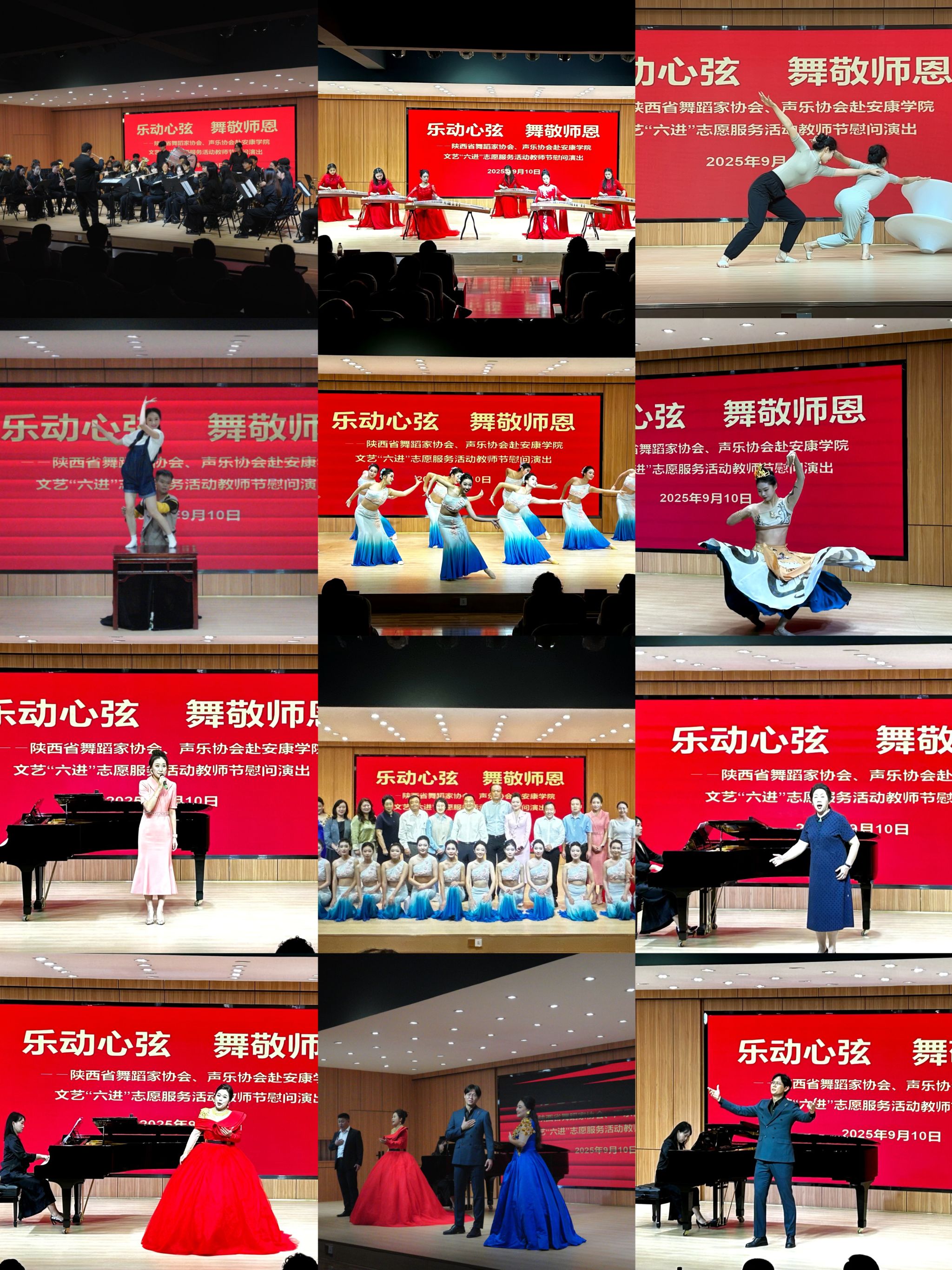 作为本次活动的重要参与方,万象城awcsport官网充分发挥学科专业优势与人才资源优势,全力配合活动开展。学院组织专业教师与优秀学生代表,联合陕西省舞协、安康市舞协等多方文艺力量,共同打磨演出内容。在万象城awcsport官网校内演出现场,学院师生与歌唱家安金玉、喻红,陕西师范大学舞蹈系等文艺工作者同台,通过舞蹈、歌唱等多元艺术形式,将对教师的感恩之情融入每一个动作、每一段旋律,精湛的表演赢得现场师生阵阵掌声,为校园营造了温馨浓厚的节日氛围。