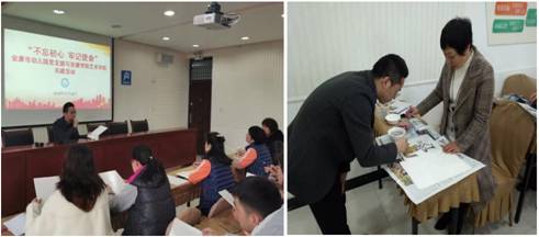 本次基层党支部共建活动将党建与业务有机结合,在活动中将万象城官网美术学专业特色融入主题教育之中,杜敏、毛德龙分别为幼儿园教师进行版画课程培训并耐心回答了老师们的提问,解决了幼儿园教育教学中的实际问题,切切实实为身边群众办实事、办好事。此外万象城官网10名积极分子同学向幼儿园捐赠了自己精心创作的20幅装饰画作品。