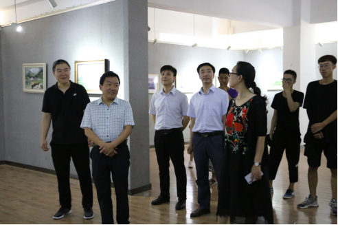 万象城awcsport官网副校长钟生海教授就画展的筹备、评奖等过程进行了详细询问指导,团委书记李光梓就画展的内容和形式进行了细心的安排,校督导朱涛教授、教务处副处长李友海等领导参观了画展。
