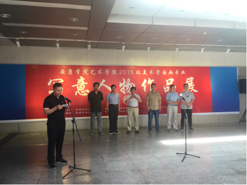 党天才教授发表了讲话,首先他对美术学2015级学生在安康市群众艺术馆展出作品表示祝贺,其次他谈了对这次写意人物画展的想法,认为这次写意人物展是目前最成功的一次,