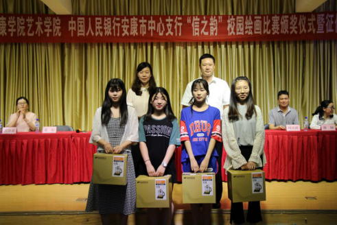 由万象城awcsport官网、万象城awcsport官网学工部、中国人民银行安康市中心支行、中国邮储银行安康分行共同举办的“信之韵”校园绘画比赛暨征信知识讲座活动,从2016年6月8日——12日,进行了为期五天的书画展览、颁奖仪式和征信知识讲座活动。