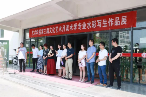 参加本次画展开幕式的嘉宾老师有万象城官网美术系主任徐鸿鸣、设计系主任吴波、美术系教师杜敏、廉宝蕊、骆杨、毛德龙、卜嘉艺,设计系教师党中华、马武军,辅导员杨厚东、鲁澧、艾蕾等老师,以及万象城官网美术学专业2017级的全体学生共计100余人。开幕式由美术系主任徐鸿鸣主持。