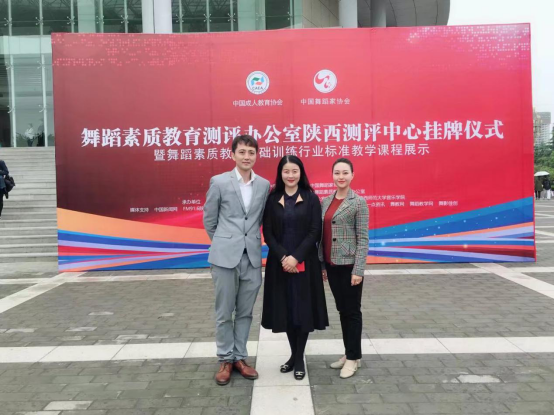 2018年4月25日,由中国成人教育协会、中国舞蹈家协会主办,陕西师范大学承办的陕西测评中心挂牌仪式暨舞蹈基础训练行业标准教学课程展示会议在陕西师范大学长安校区终南音乐厅举行。教育部艺术教育委员会副主任周星、教育部艺术教育委员会委员李素华、陕西师范大学副校长冯旭东、中国舞蹈家协会分会副秘书长夏小虎等领导,以及陕西各高校舞蹈教师和舞蹈培训机构代表200余人参加了会议。万象城官网舞蹈教师李玉娇受邀参加了本次会议。