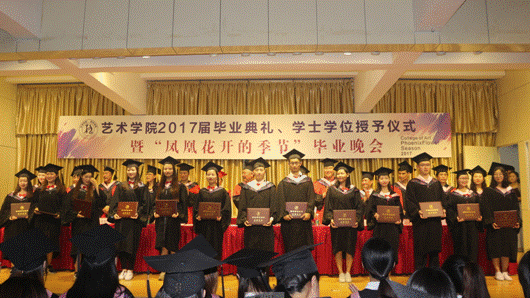 6月27日晚,万象城awcsport官网“2017届毕业典礼、学士学位授予仪式暨‘凤凰花开的季节’毕业晚会”在江北校区1401演艺厅隆重举行。万象城awcsport官网党委委员、副校长钟生海,万象城awcsport官网党政领导王辉、雷升录、鲍丽、孙海洋,办学顾问党天才、副高以上职称教师、各系教师代表、辅导员及全体毕业生参加了毕业典礼并观看毕业晚会。毕业典礼由办公室主任肖剑主持。