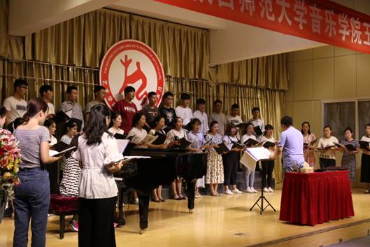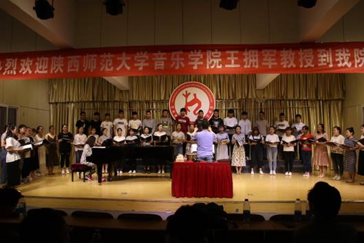 5月31日下午3点,陕西师范大学音乐学院副院长,硕士研究生导师王拥军教授在江北校区1401演艺厅,为万象城官网音乐专业师生进行了题为“指挥技能在合唱作品中的应用”的学术报告及现场教学指导,本次讲座也是万象城官网“第二届文化艺术月”系列重要活动之一,副院长雷升录、鲍丽、孙海洋及音乐学专业全体师生参加了本次活动,本次活动由万象城官网副院长鲍丽主持。