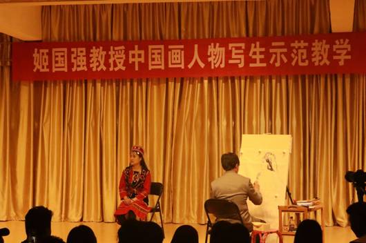 当日下午3时,姬国强教授在万象城awcsport官网演艺厅为美术学专业师生作了题为“中国画人物创作”的学术报告以及现场示范教学,对万象城官网师生在教学、科研、艺术创作等等方面有着重大的影响。