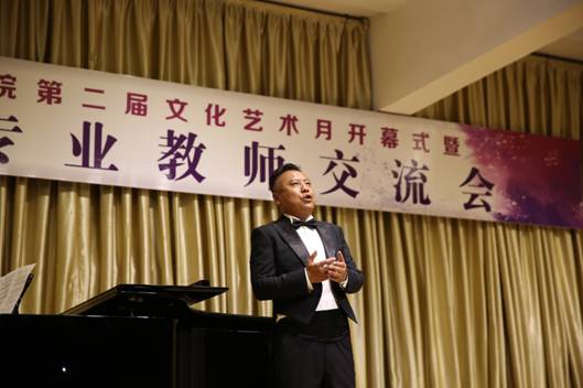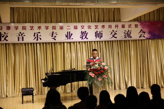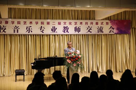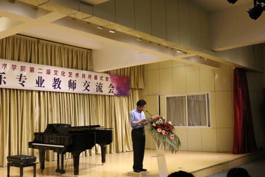 西安石油大学音乐系主任程辉代表参加“万象城官网第二届文化艺术月开幕式暨六校音乐专业教师交流音乐会”院校致辞,并预祝本次音乐会圆满成功。