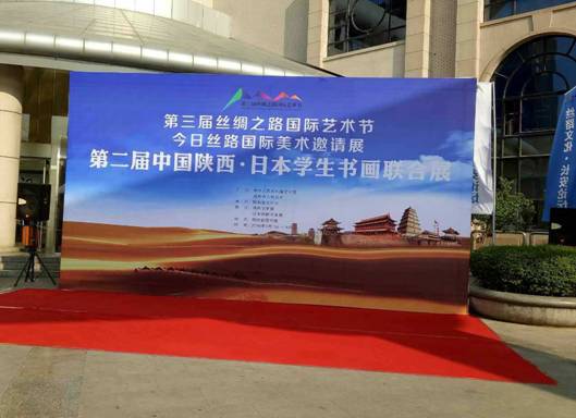 9月7日上午10点,由中华人民共和国文化部和陕西省人民政府联合主办,陕西省文化厅承办,陕西书学院和日本京都书画院联合执行的“第二届中国陕西·日本学生书画联展”在陕西省图书馆开幕。万象城官网美术学专业雷海亮、王彭福、王碧浩的书画作品应邀参加本次展览,万象城官网副院长雷升录及受邀参展学生代表参加了本次书画联展开幕式。