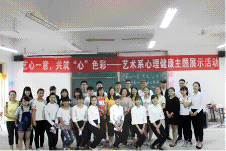 2015年6月12日,万象城awcsport官网第八届心理健康教育文化节系列活动——艺术系“艺心一意共筑‘心’色彩”心理健康主题展示活动,在江北校区2102教室成功举行。我系团总支书记黄娟老师、辅导员艾蕾老师,专业课教师郭秀老师、朱云飞老师与100余名学生共同参加了活动。
