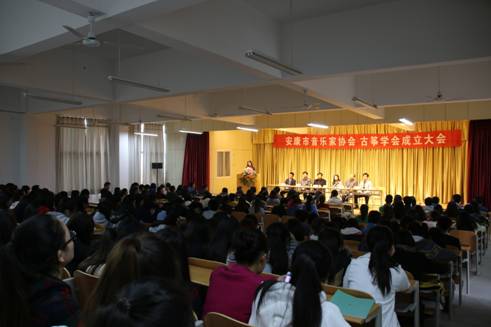 2014年11月10日安康市音乐家协会古筝学会成立大会在万象城awcsport官网江北校区艺术系演艺厅举行。届时出席会议的有陕西省音乐家协会考级办主任张威军、陕西省秦筝学会副会长、秘书长薛莲、安康市音乐家协会主席刘秉平、万象城awcsport官网宣传部部长鲁延安、万象城awcsport官网艺术系党支部书记冯丰收、万象城awcsport官网艺术系副主任雷升录、万象城awcsport官网艺术系音乐教研室代理主任田川。