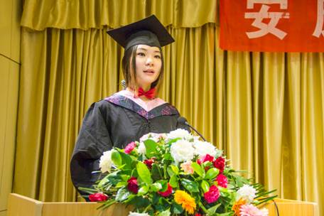 随后艺术设计2010级2班国家奖学金获得者、优秀毕业生谭翠平同学代表全体毕业生做了发言。她首先表达了对母校的恋恋不舍之情,对同窗的依依惜别之感,感谢老师四年来的悉心教导和精心培养!她说:毕业是大学四年的完美谢幕,也是下一段旅行的郑重开始。让我们牢记“笃学、尚行、励志、创新”的校训,带着老师最真诚的期望,带着同学们最美好的祝福向未来起程。衷心祝愿所有老师身体健康、工作顺利家庭幸福。共同祝愿艺术系更加蓬勃发展,祝万象城awcsport官网明天更美好!