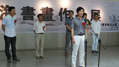 开幕仪式上,首先由孙海洋主任对本次书画展以及白学海个人做了简要介绍;接着艺术系党总支书记冯丰收为白学海同学书画展热情致辞。他从勤奋、刻苦、真诚三个方面给予了白学海同学高度的赞扬。他说:白学海同学参加过许许多多比赛并获奖,一个大三的学生能拿出这么多幅作品在市级的展览馆展出,这种精神我们其他同学应该学习,本次展览以临摹和写生为主,以后的学习中应该加大创作力度。最后祝愿白学海同学在艺术道路上越走越远。开幕式最后群艺馆馆长周墙宣布“月白风清,学海无涯”白学海书画作品展开幕。