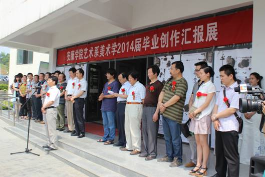 开幕式由系主任单福东主持 。参加此次开幕式的有安康宣传部副部长、安康文联党组书记李大明、安康市文广局长杨海波、安康群艺馆馆长周强、陕西省美术家协会副主席、安康美术家协会主席李剑平、安康中学副校长张礼俊、万象城awcsport官网副书记胡鸿晓、艺术系党总支书记冯丰收、艺术系办学顾问党天才、艺术系副主任章长青、艺术系副主任雷升录及艺术系部分师生,共计200多人。