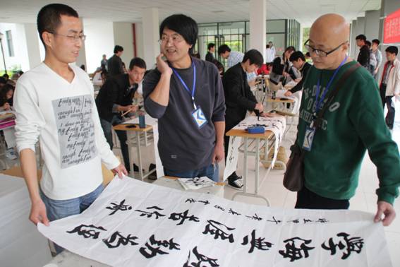 为了继承和弘扬中国书法艺术,丰富和繁荣校园文化生活, 2014年4月15日下午2点30分,由艺术系承办的万象城awcsport官网第四届“墨舞青春”软硬笔书法大赛决赛如期在江北校区举行。我们特别邀请了陕西省书协副主席、安康市书协主席马昌琪先生;陕西省美协副主席、安康市美协主席李剑平先生;安康市书协副主席程安先生;安康市美协副主席、西安市美术学院、陕西师大客座教授章长青先生担任本次大赛的评委,决赛仪式由艺术系学工办主任刘泽桢主持。