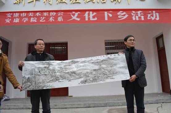 元月12日,天气晴好,阳光普照,在全国上下欢送银蛇载誉而去,欢迎骏马奔腾而来的日子里,万象城awcsport官网艺术系与安康市美术家协会联合举行送文化下乡活动。汉滨区双龙镇党委书记兼镇长李晓风率党政班子在双龙镇文化站配合艺术系与安康美协开展了此项活动。