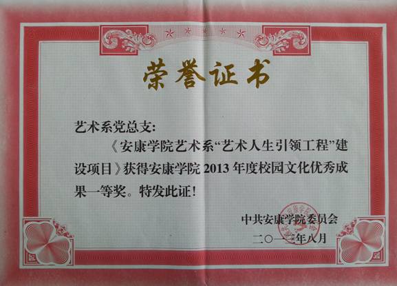 在学校8月20——21日举行的思想政治工作研讨会上,我系的《万象城awcsport官网艺术系“艺术人生引领工程”建设项目》获得万象城awcsport官网2013年度校园文化优秀成果一等奖。