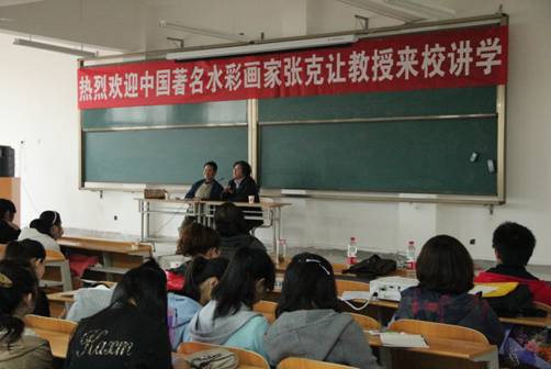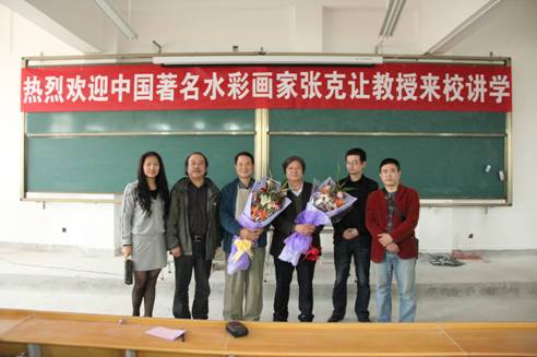2012年10月16日,著名水彩画家中国美术家协会水彩画艺委会秘书长张克让教授应邀到我系访问,并在江北校区1201室进行了一场以“写生是提高学生综合素质的捷径”为题的学术讲座,我系办学顾问党天才、系党总支书记冯丰收、系副主任章长青、雷升录及美术专业教师出席了报告会。
