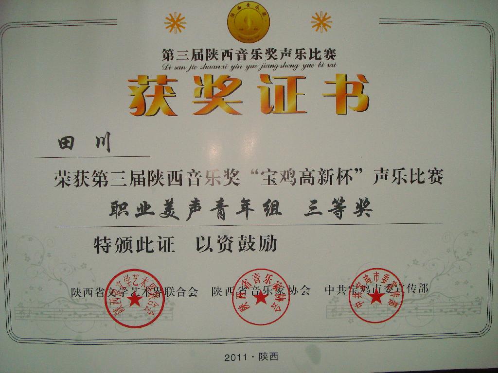 田川获专业美声组三等奖