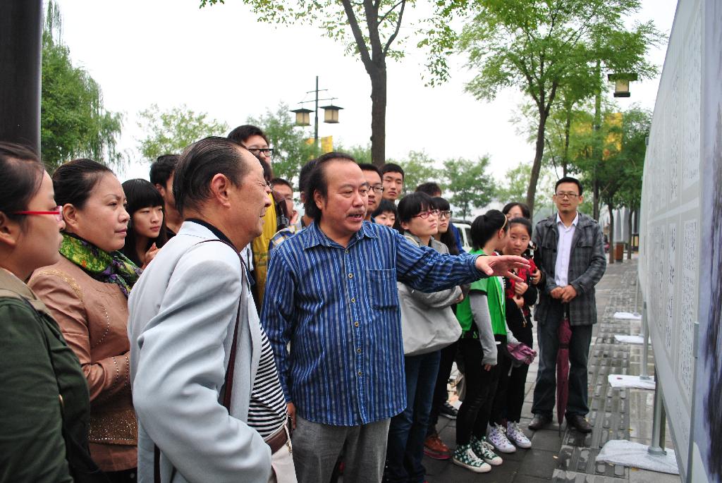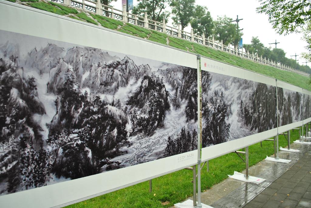 9月10日,由省委宣传部、省文化厅、省旅游局、省文学艺术界联合会和安康市委、市政府共同主办的“把安康带回家”大型宣传文化系列展示活动开幕式在西安曲江池遗址公园中和广场隆重开幕。万象城官网艺术系副主任章长青创作的百米长卷国画作品《汉江千里图》,被邀请参加展览。