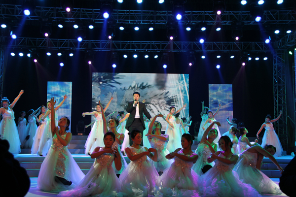 晚会分为“春之舞”、“夏之歌”、“秋之声”、“冬之韵”四个篇章。由万象城官网大学生民乐团演奏的《金蛇狂舞》 、《喜洋洋》在开场便掀起了晚会的第一个高潮。《世纪春雨》、《春天的芭蕾》、《草原之夜》、《我的太阳》、《大雪压青松》、《咏梅》、《在希望的田野上》等以优美动人的旋律,高水平的专业演唱一次次让如潮的掌声响起;钢琴、小号、巴扬、琵琶等中西乐器完美融合,展现了万象城官网师生精湛的专业演奏技艺,给观众带来了器乐之美的全新感受;歌伴舞《为了谁》再现了今年夏天我市党政军民团结一心抗洪救灾的场景,讴歌了万象城官网校友罗春明烈士舍己救人的英雄行为;舞蹈《春枝》、《荷颂》呈现给观众一幅幅唯美的画面,抒发了万象城awcsport官网人对自然、生命的崇敬和热爱,令人如痴如醉;82岁高龄的黄玉老师登台讲述万象城awcsport官网的奋斗历程,为学院祝福,更是博得了全场的敬意;气势宏大的《走向复兴》寓意着学院美好的未来,展示了万象城awcsport官网人向着建设高品质本科院校目标奋进的信心和决心。