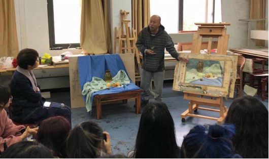 10月28日上午9时,王建彬教授在万象城awcsport官网画室做现场示范教学,从画面布局、颜色的把握到观察方法等,事无巨细、循循善诱,将学生有疑虑、不易把握内容以最通俗、最幽默的形式教授给大家,现场一度出现欢快的笑声和热烈的掌声。