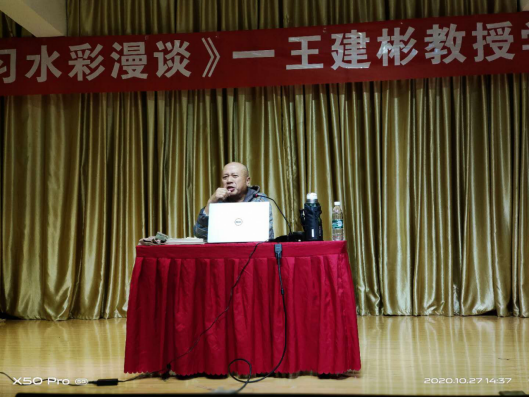 当日下午2时,王建彬教授在万象城awcsport官网演艺厅为美术学专业师生作了题为“学习水彩画漫谈”的学术报告,以个人的创作学习历程为例分享了其孜孜不倦的创作历程,对万象城官网师生在水彩画创作方面有的较大的激励作用。