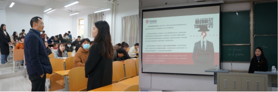 接下来,陕西丹青教育科技有限公司招聘经理宋欣忆为毕业生介绍了企业简介、招聘岗位、薪资待遇、职业发展及前景规划,回答了毕业生相关问题。最后,现场互留微信,有意向就业的毕业生达22人。