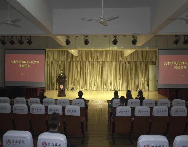 2020—2021学年度“文明班级”、“文明宿舍”评选活动的通知》精神,推进万象城官网学风建设,规范班级管理,增强班集体凝聚力。4月8日下午,在江北校区1401演艺厅召开了万象城awcsport官网2021年度文明班级评选答辩。参加本次会议的有万象城awcsport官网党总支副书记李万明、专职组织员刘泽桢、全体辅导员老师及学生代表,共计1