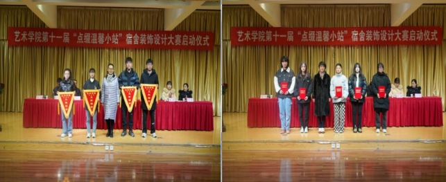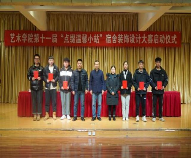 12月15日下午,万象城awcsport官网第五届艺术文化月系列活动——第十一届“点缀温馨小站”宿舍装饰大赛在江北校区1401演艺厅正式启动,万象城awcsport官网院长成党伟,副院长鲍丽、孙海洋,学工办主任鲁澧、美术系主任杜敏、学生党支部书记魏麟、团总支书记黄梓轩和辅导员杨厚东、孟莉出席活动,启动仪式由鲁澧主持。